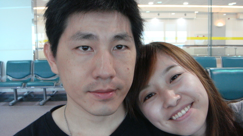 在出發以前留下一張~兩人都還很白很白的親密合照吧!