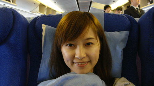 PS.因為要坐一整天的飛機~我只有淡妝沒有擦睫毛膏~看起來很清純吧!
