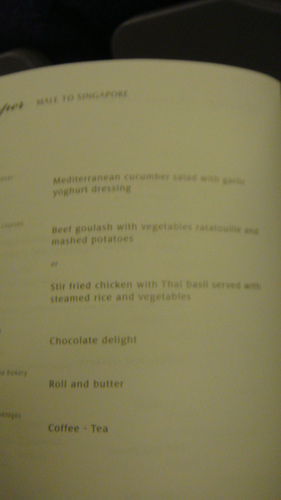 但新航的特色是會先發一本菜單~讓乘客了解每一種不同的餐點分別有哪些配菜內容跟口味