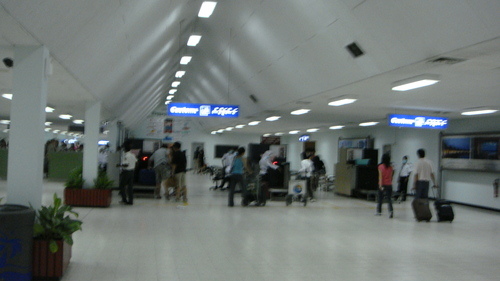 此時~卻還不能上飛機~要坐在候機室裡頭