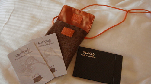 完成手續後~接待小姐給了我一個有繫繩的小包包跟一個介紹瑞提拉島的小冊子接待小姐非常非常溫柔~我們英文不好~都聽不太懂他在講甚麼~可是她都很有耐心的解釋很多遍