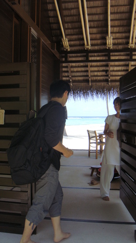 在我開開心心完成房間巡禮後~門鈴響了~是我們的Villa Host Ibrahim來訪