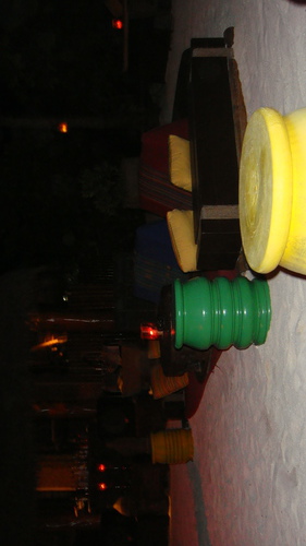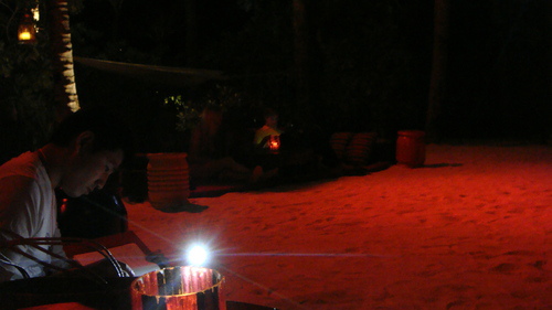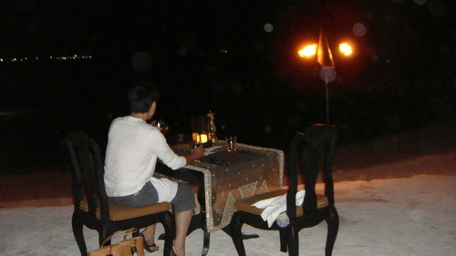 一整排的火炬立在沙灘上~是餐廳的主要照明~非常有情調喔!