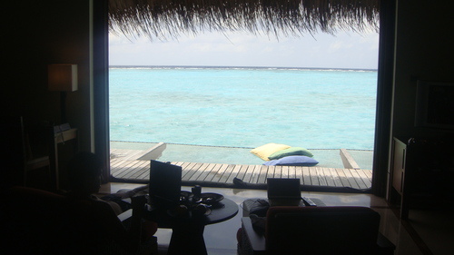 因此我跟老公在Water Villa這幾天~白天都喜歡把電腦搬到這邊來用