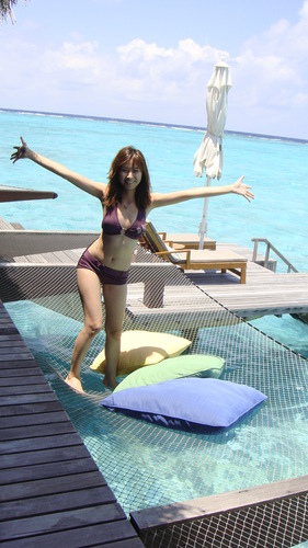 本來想學官網宣傳照那樣的跳起來拍拍起來很美~想曬太陽時~我也喜歡躺在這邊~還可以直接低頭看海中有沒有魚