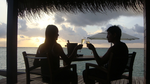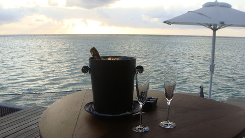打算在浪漫的夕陽下~品嚐我們的蜜月香檳