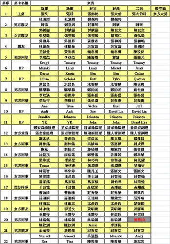 以下是婚宴前一天給婚顧的桌次表(灰色是到婚宴前一天~還跟我說不確定的人)