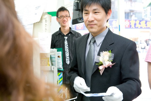 結果新郎倌把所有伴郎跟男性工作人員全帶去壯膽了XD