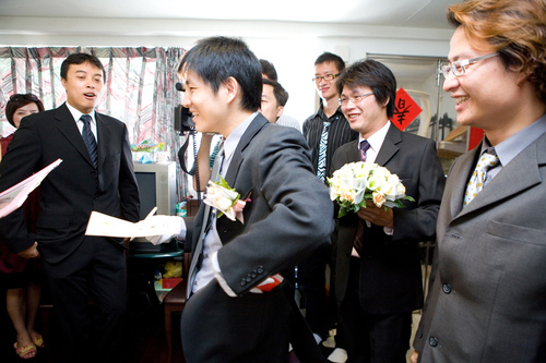 他說"才第一關就這樣了~你還是多準備幾個紅包買通伴娘吧"