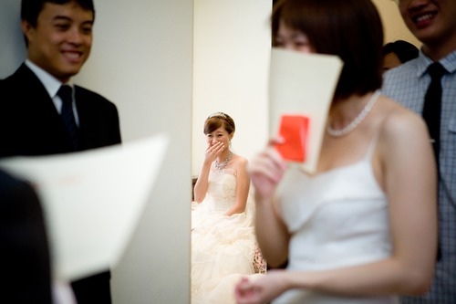 (雖然伴娘一直回頭問房內的新娘有沒有聽到~其實我有聽到啦~不過我穿個大禮服坐在床上根本動彈不得無法回答XD)
