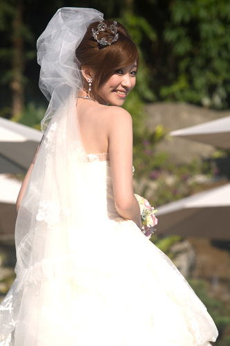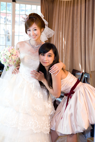 本來只有澎澎頭而已~可是我還是希望有長頭紗~所以請嘉玲幫我把原本的頭紗接在下面