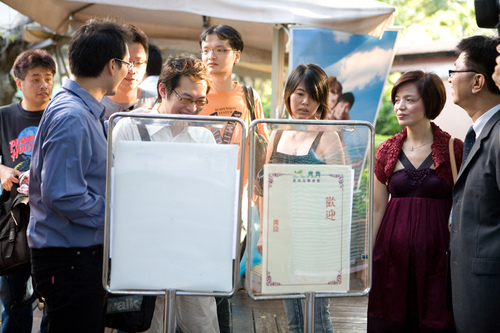 婆家的親友都好早到~坐在外頭的樹下乘涼