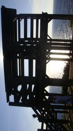 要走過這個搭建在海面上的橋~到中央的平台上~教練在平台上等我們