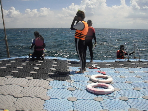 教練要大家先下水~~水下有個平台可以安穩的站著