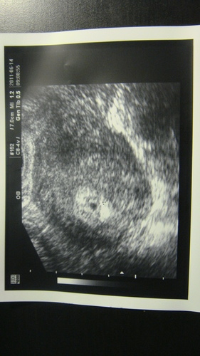 (黑黑的那圈是胚囊~醫生拉的那條線那裏才是胚胎喔)