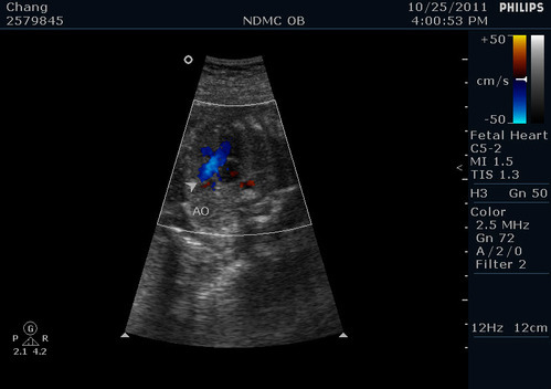 這邊醫生看很仔細~因為容易跟主動脈的藍色血流搞混~確定沒有逆流破洞~而且2進2出~正常!