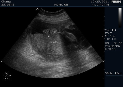 醫生用箭頭標出的那條是橫膈膜喔! 橫膈膜如果有破洞出生後會死亡~所以一定要看哩