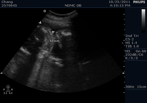 因此北鼻的整個右半邊是靠我的背部方向(超音波螢幕的下方)