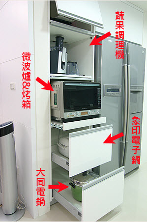 因為放不進電器櫃~只好擺在廚房拍張照~但我們並沒有插上插頭過