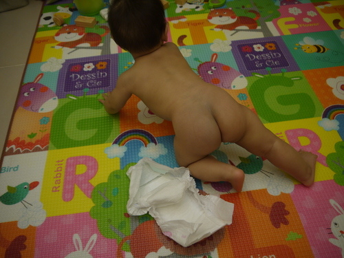 小允老是會自己抓抓抓就把尿布給脫了~.~