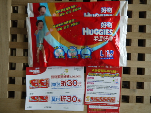 索取來的試用包內含兩片L號好奇柔適好褲 與兩張30元折價券喔!