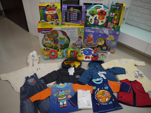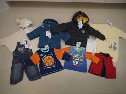 我揹著小孩真的很難蹲下來翻翻撿撿...挑幾件後就累了....直接放棄衣服