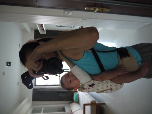 而且小人醒著的時間多了~~開始不喜歡被我埋進揹巾裡頭了