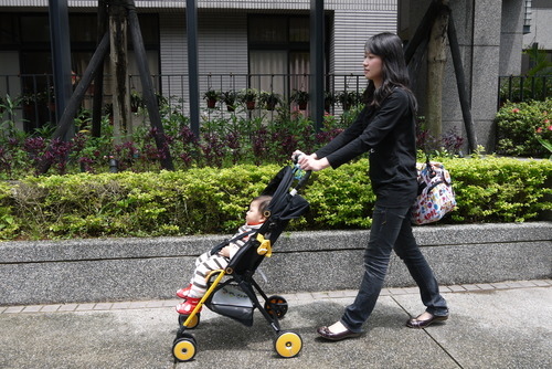 5.5KG的重量加上必須提高到快到胸前的高度~我總是必須靠雙手才有辦法打開推車