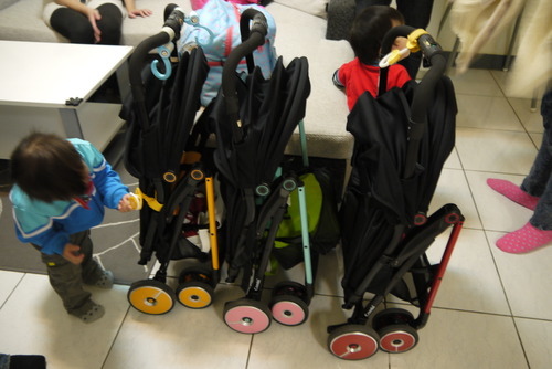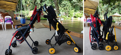 去朋友家玩~三台推車收好排排站也很不佔空間!