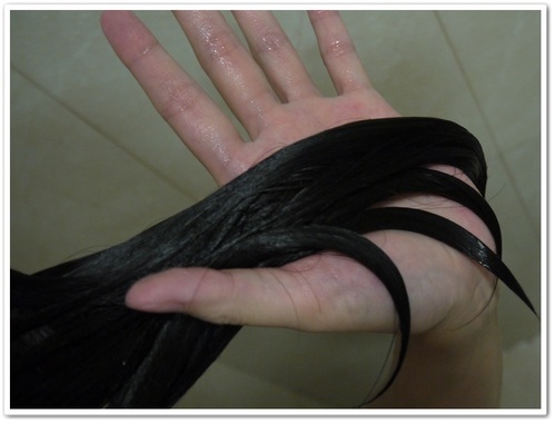 沖掉洗髮乳之後的頭髮~比之前舊款感覺較不乾澀