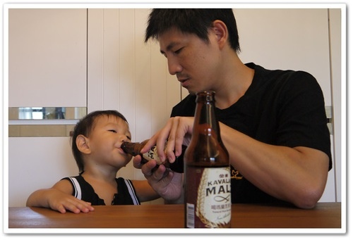 「金車噶瑪蘭黑麥汁」天然、減糖而且富含營養素,小朋友也很適合飲用,比較放心給小允也來上一口