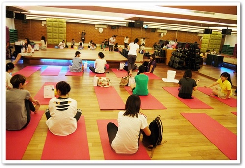 這次地點直接在瑜珈教室裡頭,感覺等等的瑜珈課是要"來真的"阿!
