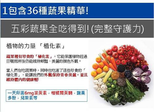 36種植物精華包含類黃酮 花青素 薑黃素 葉黃素 蔬果多酚等等目前知名對人體有益的成分