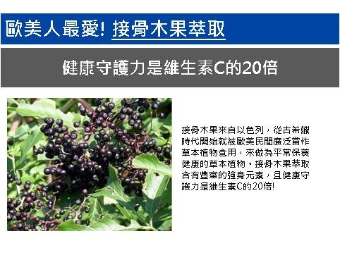 還有接骨木果萃取,它的抗氧化力是維生素C的20倍喔! 可以守護身體健康。