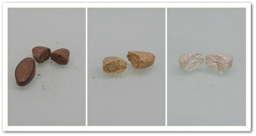 因為三種錠成分都不同~所以雖然一樣是甦齡錠~男錠偏綠(因為有薑黃素)