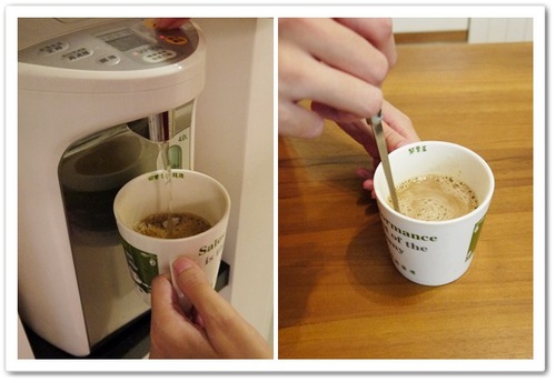 當然如果喜歡喝清淡一點也可以多加一點水,好處是可以喝很大碗又不會增加ˋ咖啡因負擔啦