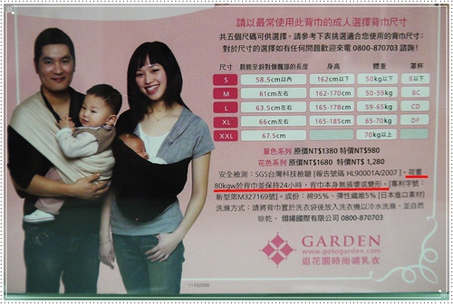 唯一需要注意的就是必須按照個人身材挑選尺寸,因為背巾無法調整喔!