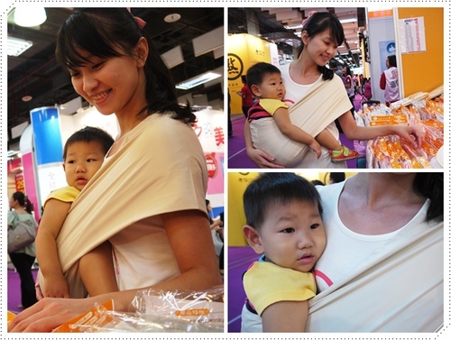 不過就算我是用推車帶小允出門,我還是得帶著背巾,例如去跑婦幼展時
