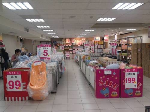 用品內著區東西比較多樣,有內衣睡衣家居服睡袍棉被抱被玩具奶瓶推車汽座跟各種清潔用品