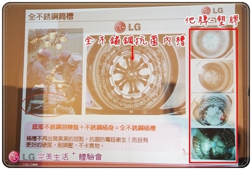 LG不只全筒身不鏽鋼,連底部的轉盤也是不銹鋼的!抗菌防霉而且耐擠壓不易損壞喔!