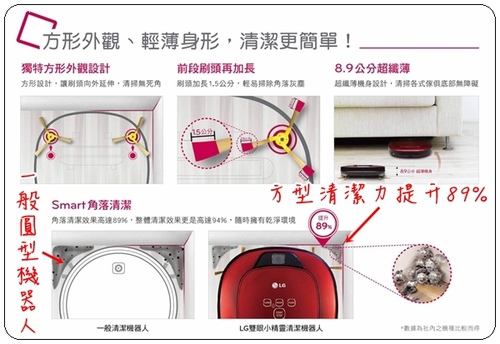 來看看LG好正款跟圓款掃地機器人的PK-LG好正款超強角落清潔能力