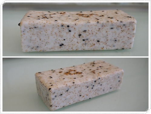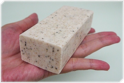 嫩足皂的外觀可以看到密布著咖啡色黑色的點點