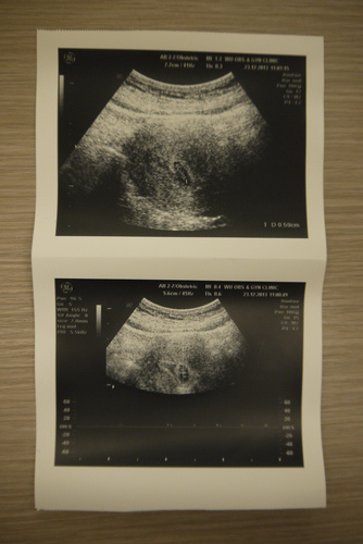 醫生用腹超依然照不到,改用陰超,照到小黑點,醫生判斷為4周大小,要我2周後回診