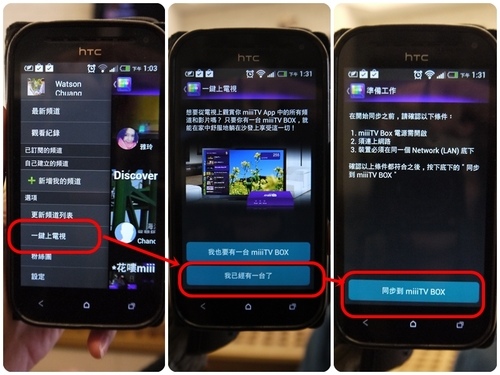 只要跟你的miiiTV在同一個網域下按下"一鍵上電視"這個按鍵,你的帳號就會跟那一台miiiTV進行同步
