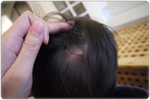 後腦杓撞到廚房通往陽台的門檻,腫好大一包