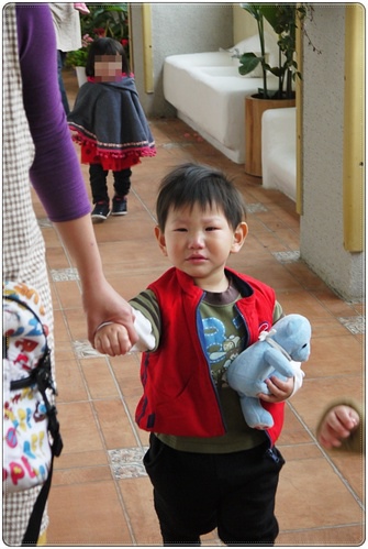 今天去接他時只能在門外等,遠遠看到老師牽著小允走出來,小允眼眶鼻子都紅紅的
