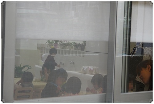 一放下去就自己衝進教室去玩玩具,連再見都來不及跟他說,只好在外面偷看