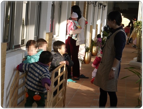 11點左右看到其他媽媽來接小孩,主動把自己的鞋子拿到門外放