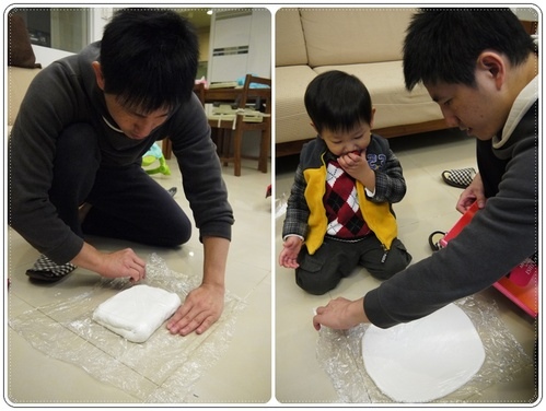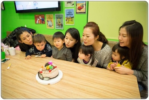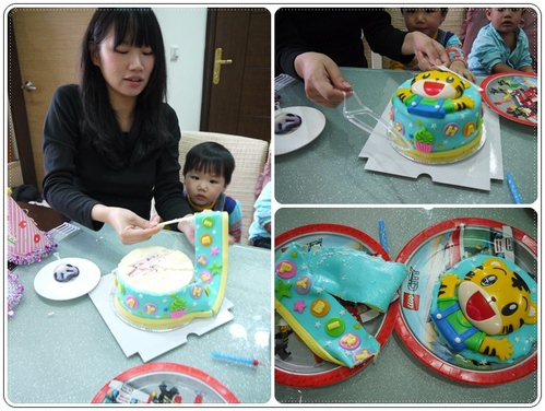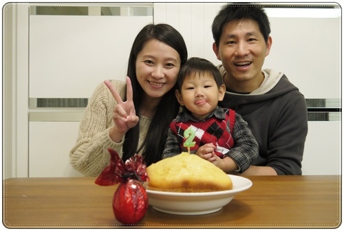 然後一起享用了阿罵親手做的蛋糕(我不是比YA~是指2歲的意思)