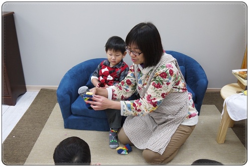 老師先跟大家(所有小朋友)介紹小允小時候的襪子